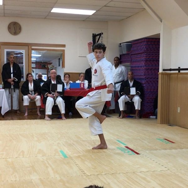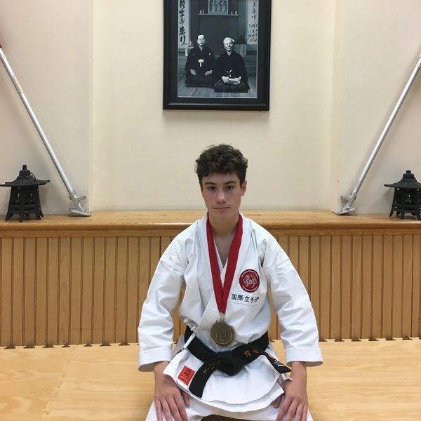 Hubert Kolodziek at the Honbu dojo in Canada. He won the gold in both Kumite and Kata categories (Canada Karate Championship tournament).